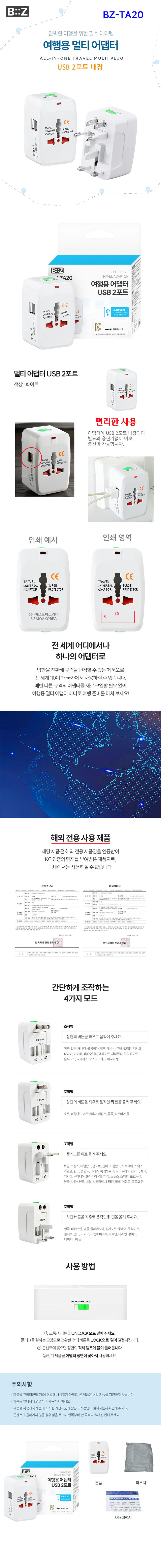 ÃæÀü±â+2 USB ¿©Çà¿ë¸ÖƼ ¾î´ðÅÍ ÃæÀü±â BZ-TA20